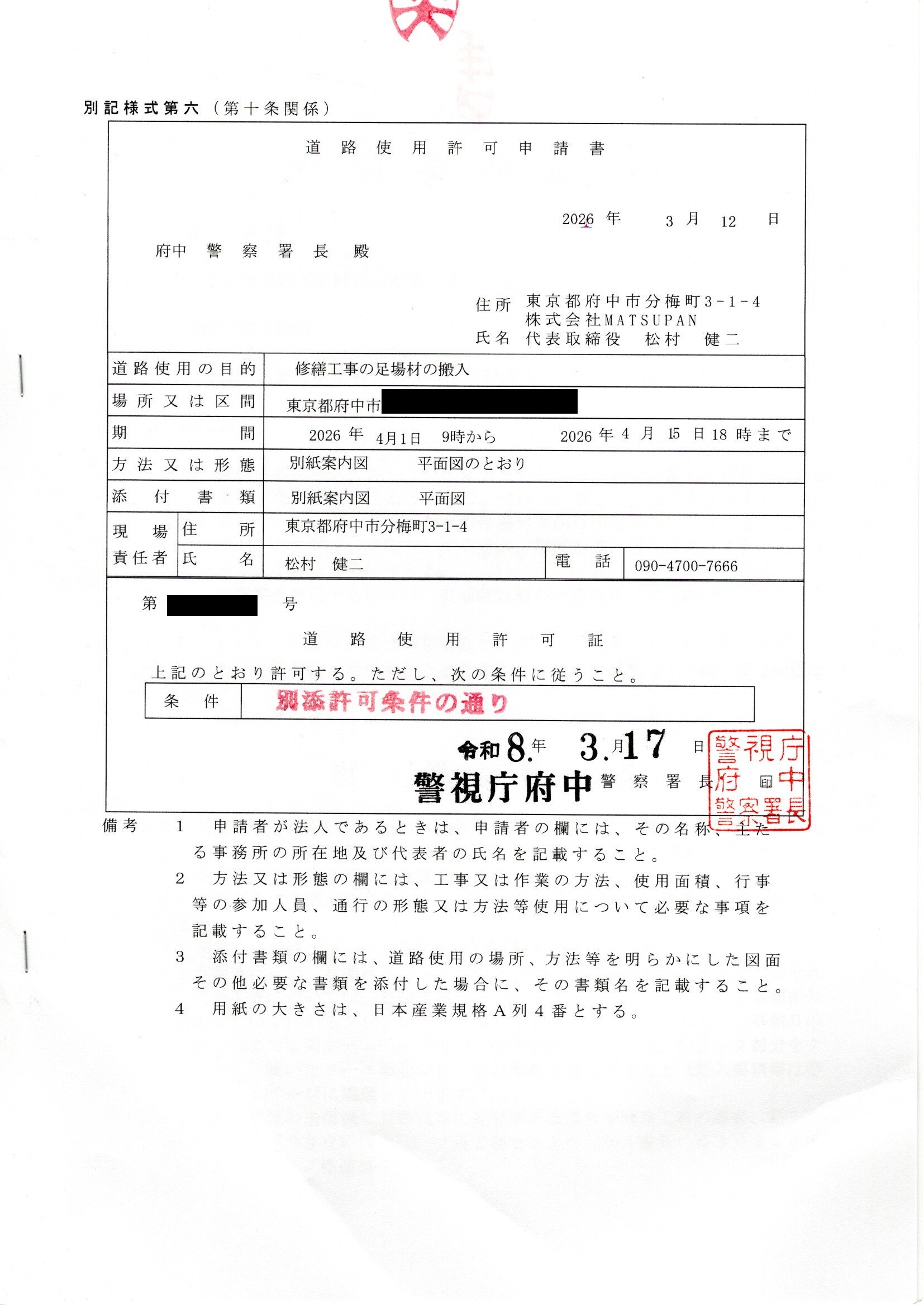 👉 警察署への「道路使用許可」の申請が必要になります